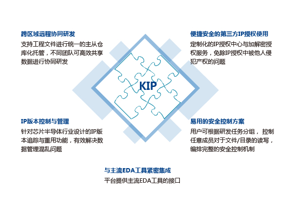基于知識產權保護的協同研發與IP數據管理平臺 用戶友好的IP追溯與重用系統,支持網 頁端操作,提供IP版本標定,發布,重 用,文件倉庫管理,主干分支操作,記 錄回滾,文件對比, IP加解密及授權管理等功能。